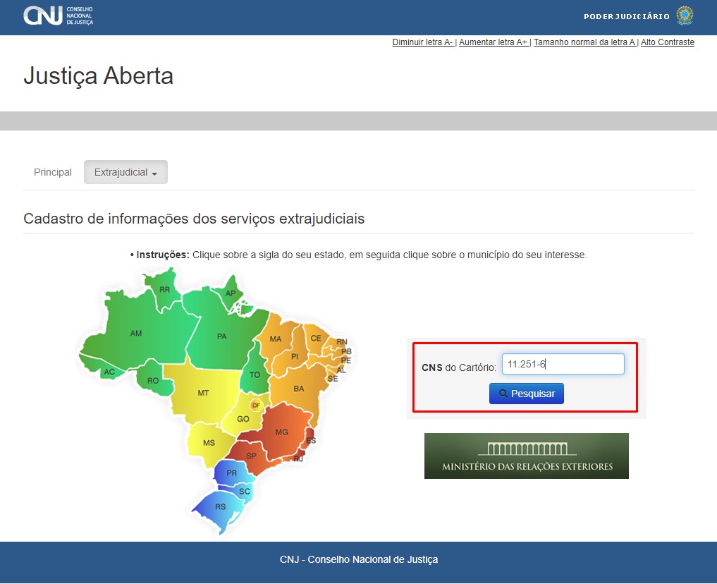 3. Informe o número do CNS 11.251-6 e clique em Pesquisar: